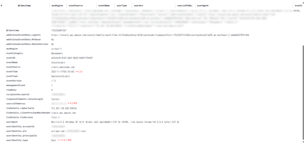 上記1は、前述の「rootユーザは普段使わない」の方針のもと、もし、自分は使ってないけど、rootユーザでログインがあったら、AWSアカウントが乗っ取られた可能性が高いです。