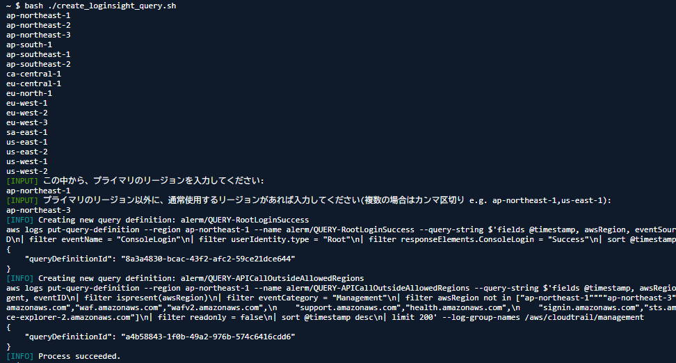 bash ./create_loginsight_query.shインタラクティブに、普段使用するリージョンを聞くので、入力してください。