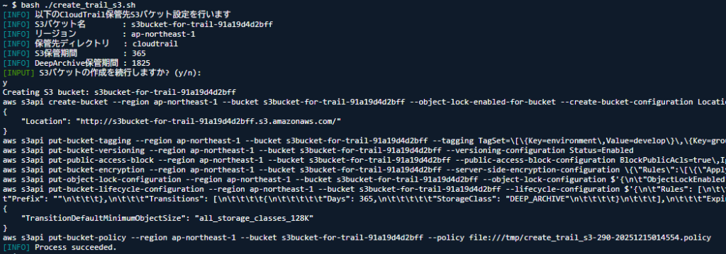 info "CloudWatchロググループ名 : ${TRAIL_LOG_GROUP}"