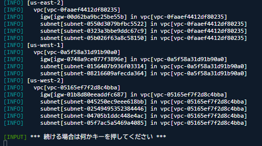 削除対象リソースの表示が終わると、一旦ポーズするので、何かキーを押して続行してください。