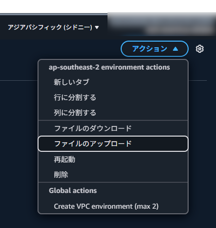 CloudShellに、delete_default_vpcs.shをアップロードしてください。